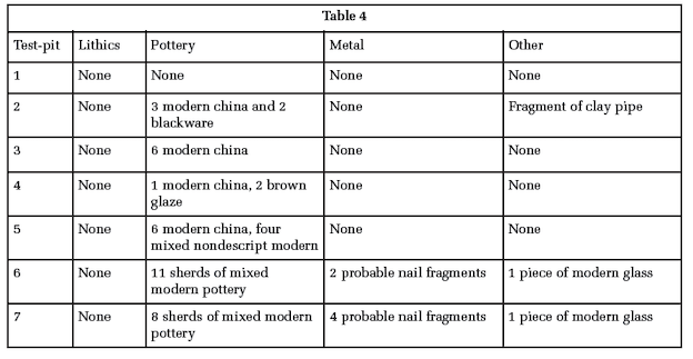 Test-pitting was carried out on Townparks 5 in October 2006 (A029–045). Seven test-pits were excavated and the soil was sieved. The finds are listed in Table 4 below.