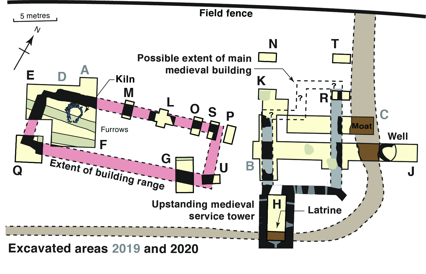 Burnt mound, Enclosure and Pit