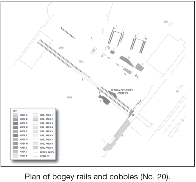 Cobbles and bogey rails were recovered from this part of the Harland & Wolff dockyard prior to its development. Nothing of archaeological significance was uncovered.