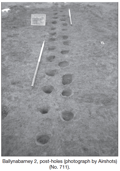 Ballynabarny 2 produced a single pit which contained approximately 76 pieces of probable Beaker pottery and fifteen other shallow pits which produced a total of 326 pieces of prehistoric pottery, the majority of which may be Beaker.