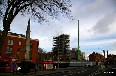 Testing took place for the temporary works for the four proposed crane pad bases. The four pits are located in an area lying between the south side of the church and the main entrance gate fronting onto James Street. The crane will be used to construct a new glass spire on the west end of the church.