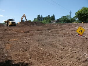 Monitoring of topsoil removal was a required after planning was approved for a small housing development at Coolduff, Kilmurry, under a reactivated licence. A geophysical survey and two phases of test excavation had been previously carried out at the site due to the presence of a souterrain (CO083-055001) on the northern boundary of the development. The required buffer zone around the souterrain was put in place before the development work began.