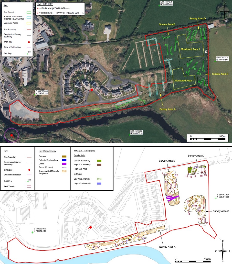 The tested areas were previously subjected to a geophysical survey by Shanarc Archaeology Ltd under Survey Licence No. 24R0236. The geophysical survey identified a small number of potential archaeological anomalies, primarily representing possible pit-type features.