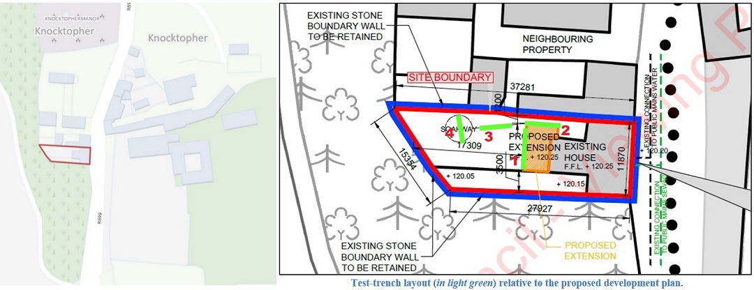 Archaeological test excavations were carried out on 30 August 2025 in relation to the proposed construction of an extension to the rear of a dwelling at Friary Street, Knocktopher, Co. Kilkenny. The site falls within the archaeological Zone of Notification (Zone ID: R138425) for the historic town of Knocktopher (KK031-017—-).