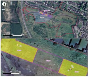 Block 3 – Three subcircular pits of similar size (0.46–1.16m x 0.44–0.76m x 0.1–0.18m) and fill (mid-grey clayey silt) two of which contained occasional charcoal and burnt bone fragments, and one pit produced three possible lithic finds, including a flake, core and debitage. These appeared to be contemporary but with an unclear purpose and are undated at present.