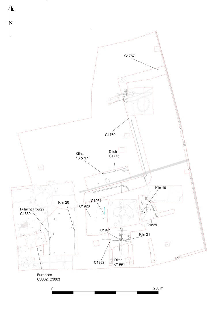 Cremation pit, Pit, Fulacht fia, Furnace, Field system and Kiln - corn-drying